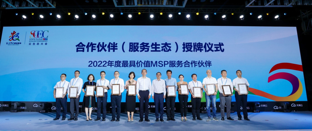 峰会期间,在由中国电信主办的“2022云生态大会·合作论坛”上,胜天国际数码荣获中国电信天翼云授予的“2022年度最具价值MSP服务合作伙伴”称号。这是胜天国际数码继成功入围中国电信天翼云2022首批MSP全区域合作伙伴之后,再一次获得天翼云的肯定。